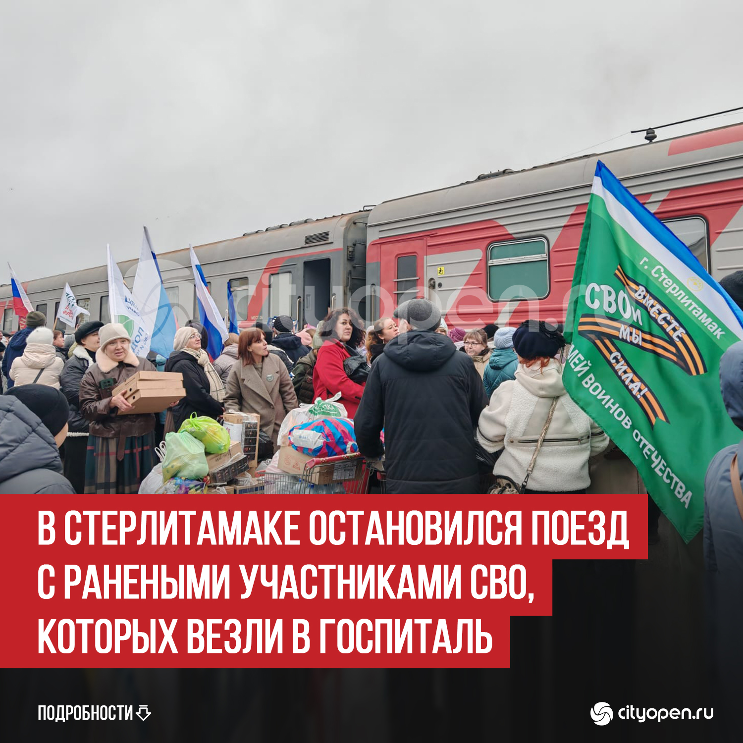 В Стерлитамаке 18 ноября совершил остановку поезд, который перевозил в госпиталь раненых бойцов. Как сообщили в Ассоциации ветеранов СВО Стерлитамака, на перрон пришли более 1000 горожан с гостинцами в коробках, мешках и даже на грузовиках. Приносили продукты питания, теплые вещи и многое другое.