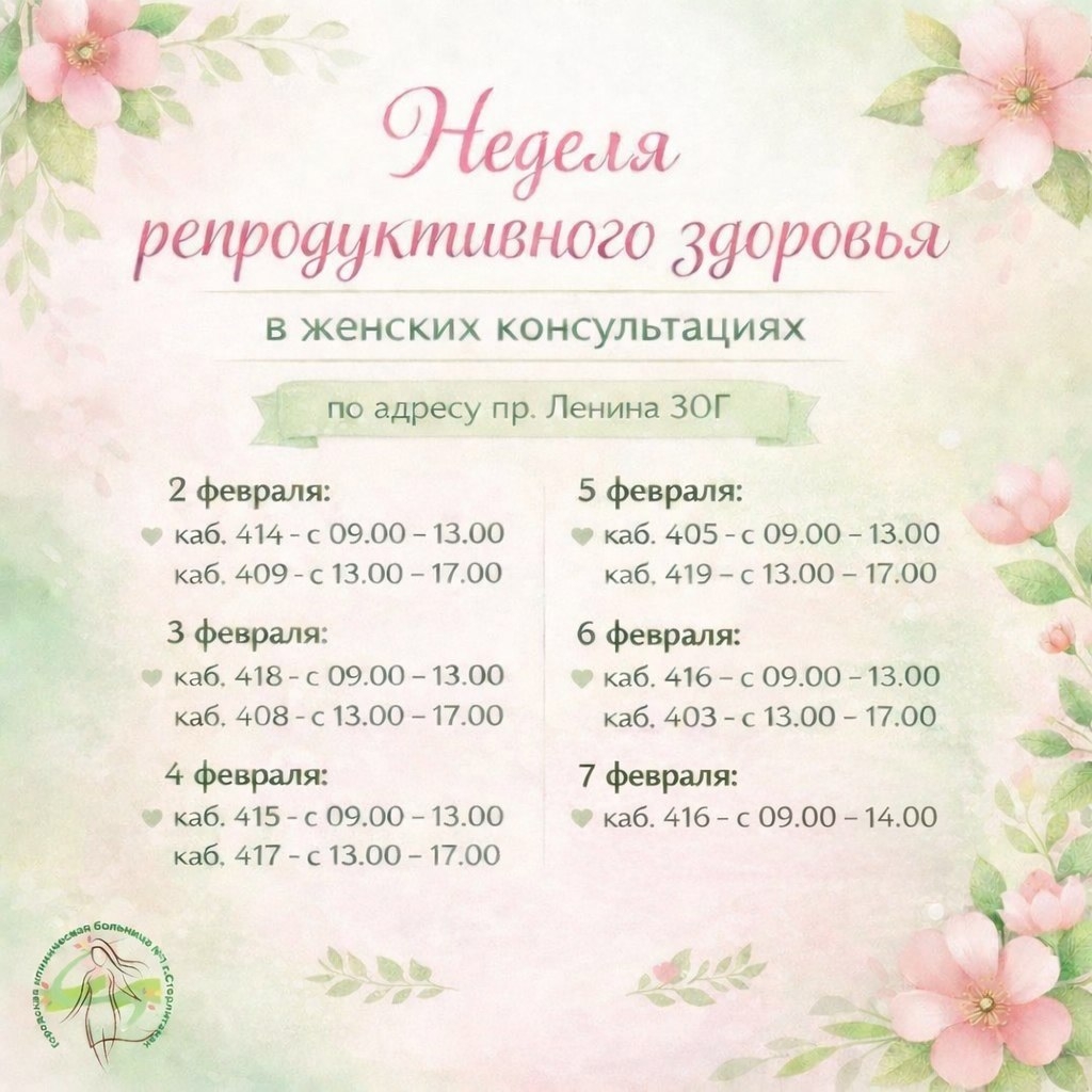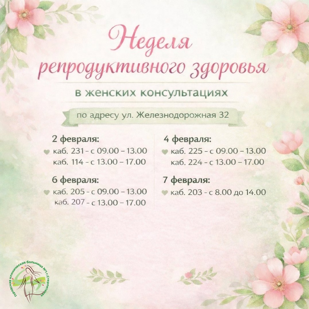 В Стерлитамаке со второго по седьмое февраля Городская клиническая больница №1 проведет «Неделю заботы о женском здоровье». Женщины смогут принять участие в акции, обратившись в женские консультации по пр. Ленина, 30Г и по ул. Железнодорожной, 32.