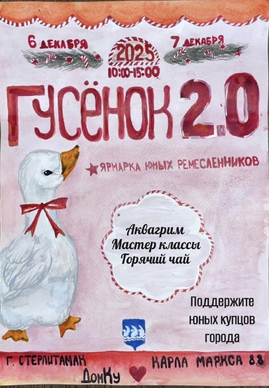В Стерлитамаке 6 и 7 декабря с 10 до 15 часов во дворе ДомаКУ по ул. Карла Маркса, 88 будет проводиться детская ярмарка «Гусенок 2.0» в рамках фестиваля «Гусь 2.0».