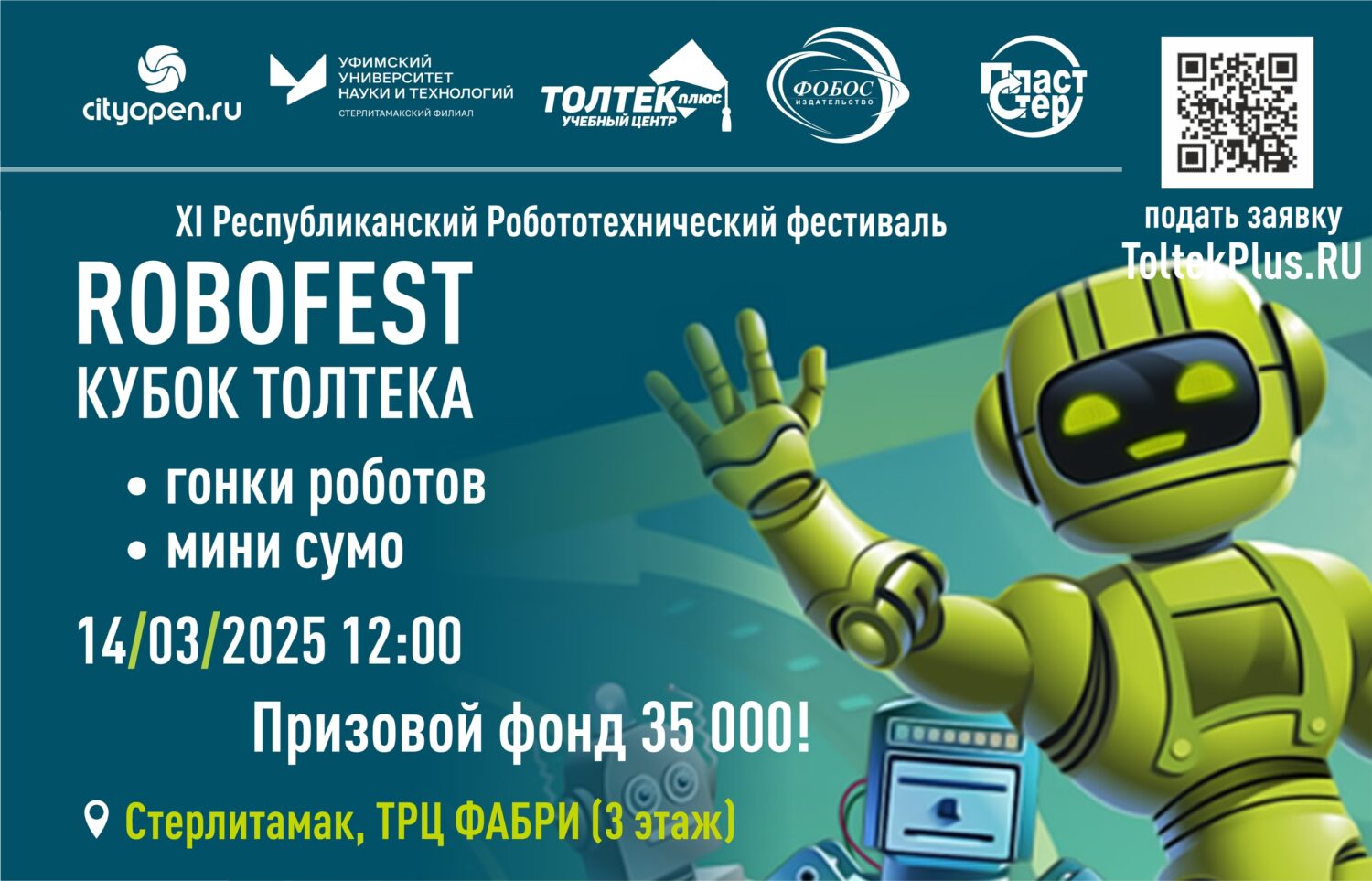 В Стерлитамаке 14 марта с 12 часов на третьем этаже ТЦ «Фабри» будет проходить XI Республиканский роботехнический фестиваль «Robofest. Кубок Толтека». Участники в возрасте до 18 лет будут состязаться по двум направлениям: гонки роботов и битва «Мини-сумо 10х10».