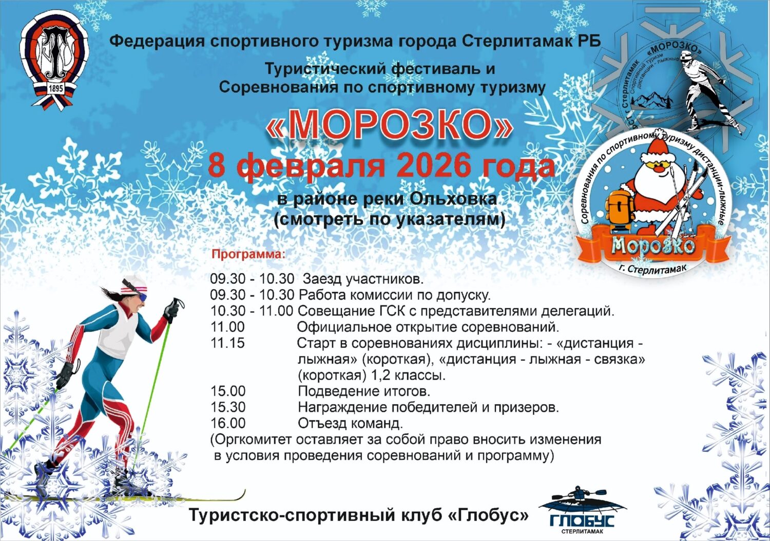 В Стерлитамаке 8 февраля в районе Ольховки пройдут соревнования по спортивному туризму на лыжах «Морозко-2026». Организаторами выступают туристический клуб «Глобус», Федерация спортивного туризма и городской спорткомитет.