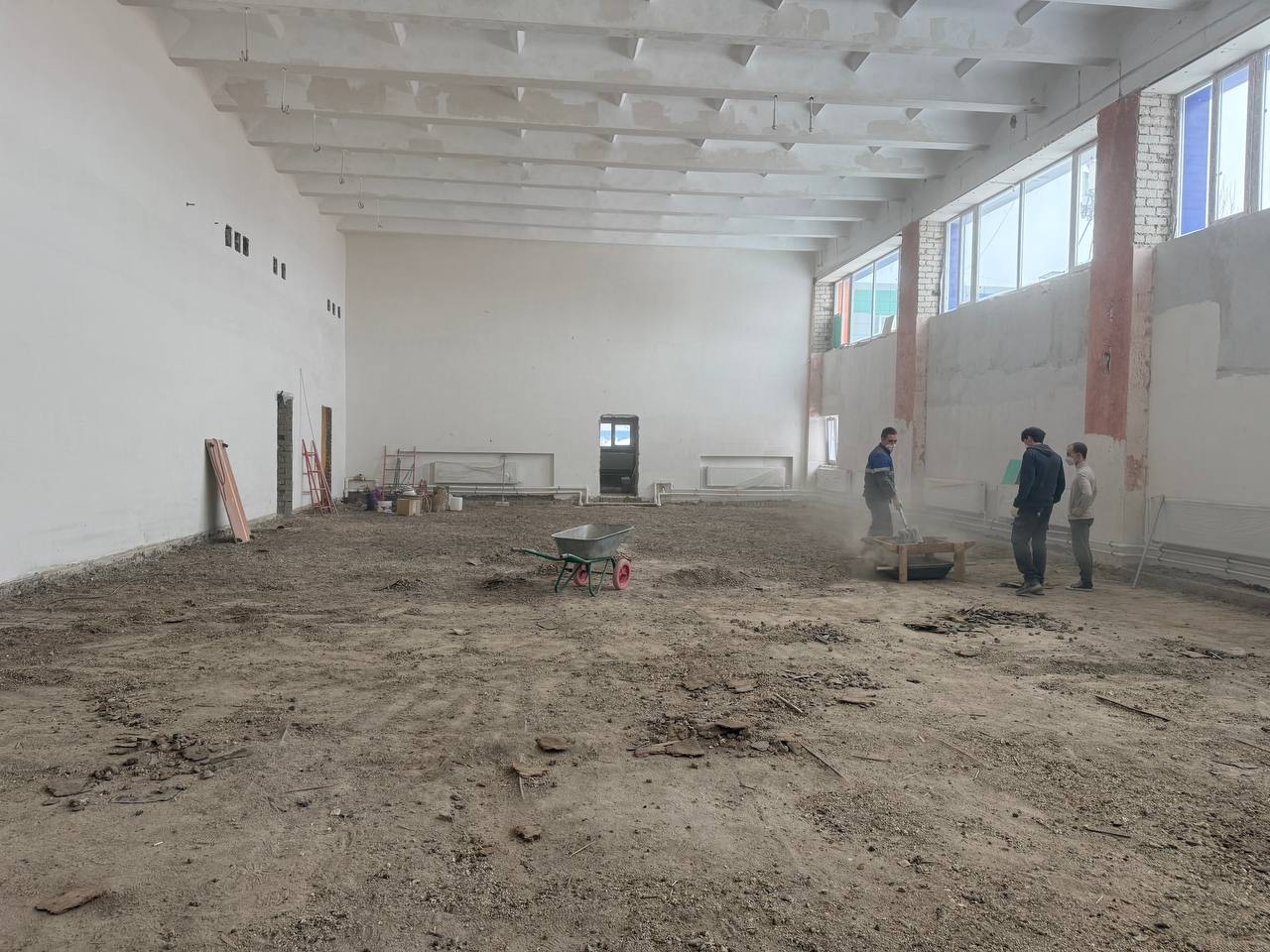 Если говорить конкретно об отдельных работах, то демонтаж, установка окон, ремонт кровли, системы отопления, водоснабжения и канализации завершили полностью, электропроводку – на 90%, как и фасадное утепление.