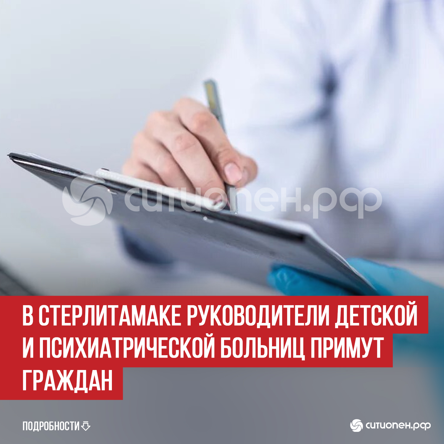 Главврач Стерлитамакской психиатрической больницы Сергей Валерьевич Бойков примет граждан с 16 до 18 часов 19 марта по ул. Лесной, 18. Желающие могут узнать об организации работы больницы, задать вопросы о доступности записи к специалистам, качестве медпомощи или иные вопросы.