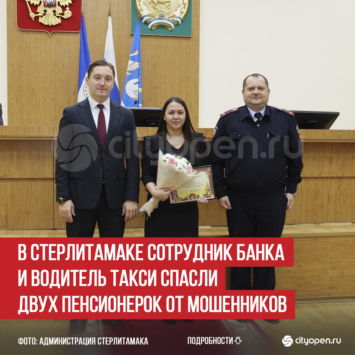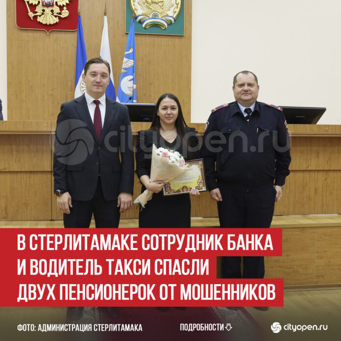 В администрации Стерлитамака Почетными грамотами городского УМВД наградили сотрудника банка Басимову Кристину Владимировну и водителя такси Хасанова Радика Рафисовича. Им удалось спасти двух пенсионерок от мошенников.