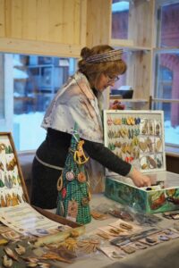 В деревянных домиках свою продукцию представят местные ремесленники. Гости ярмарки могут приобрести авторские изделия и подарки ручной работы, а также провести время в праздничной атмосфере в преддверии Нового года.