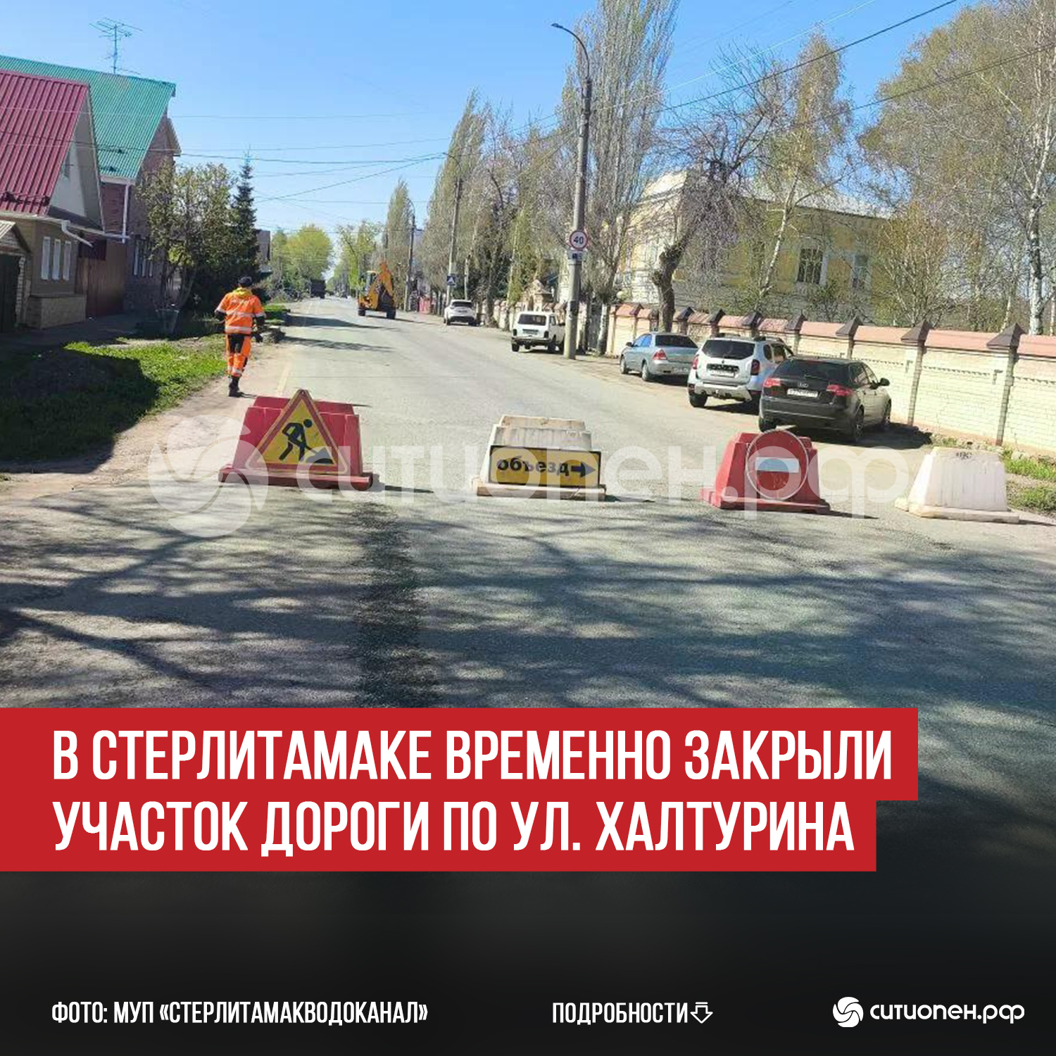 В Стерлитамаке днем 27 апреля временно перекрыли участок по ул. Халтурина от ул. Сакко и Ванцетти до ул. Худайбердина. По информации МУП «СтерлитамакВодоканал», это связано с устранением утечки.
