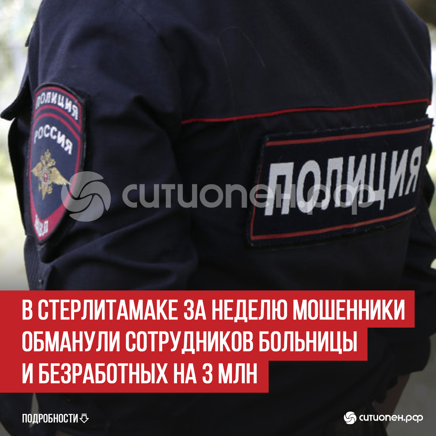В Стерлитамаке за прошедшую неделю от действий мошенников пострадали девять человек: двое сотрудников Городской клинической больницы №1, один пенсионер и шестеро безработных. По данным УМВД по Стерлитамаку, общая сумма ущерба составила 3 014 675 рублей. Неделей ранее пострадали четырнадцать человек, потеряв в сумме 2,5 млн рублей.