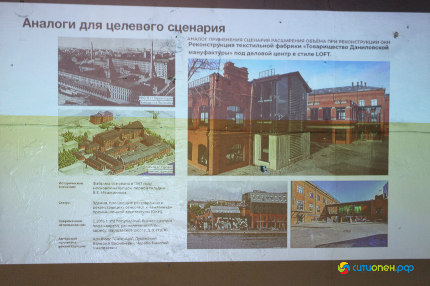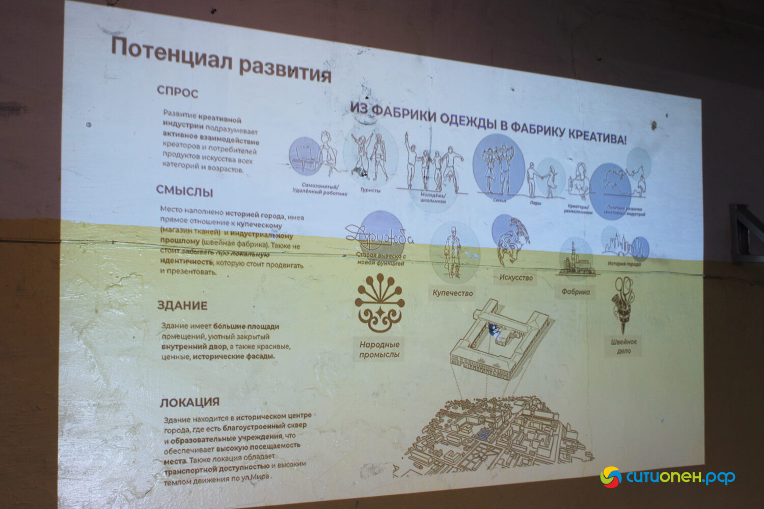 В числе прочего были выделены физические и пространственные ценности объекта. К ним отнесли большую площадь здания бывшей фабрики, вид из окон, эстетически приятный фасад, расположение здания на «красной линии», нахождение рядом с туристическим потоком и др.