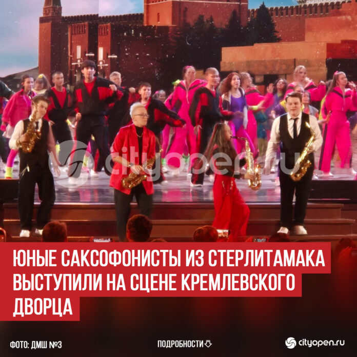 Юные саксофонисты Детской музыкальной школы №3 Стерлитамака вместе с преподавателем высшей квалификационной категории Ириной Бакалдиной выступили на сцене Государственного Кремлевского Дворца.