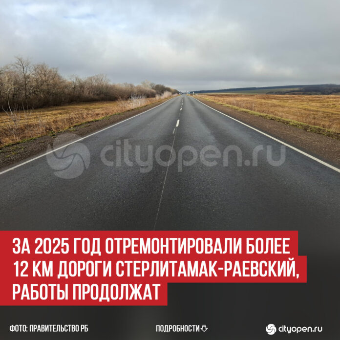 В Башкирии за 2025 год был выполнен ремонт части дороги Стерлитамак-Раевский. Работы проводились в рамках нацпроекта «Инфраструктура для жизни».