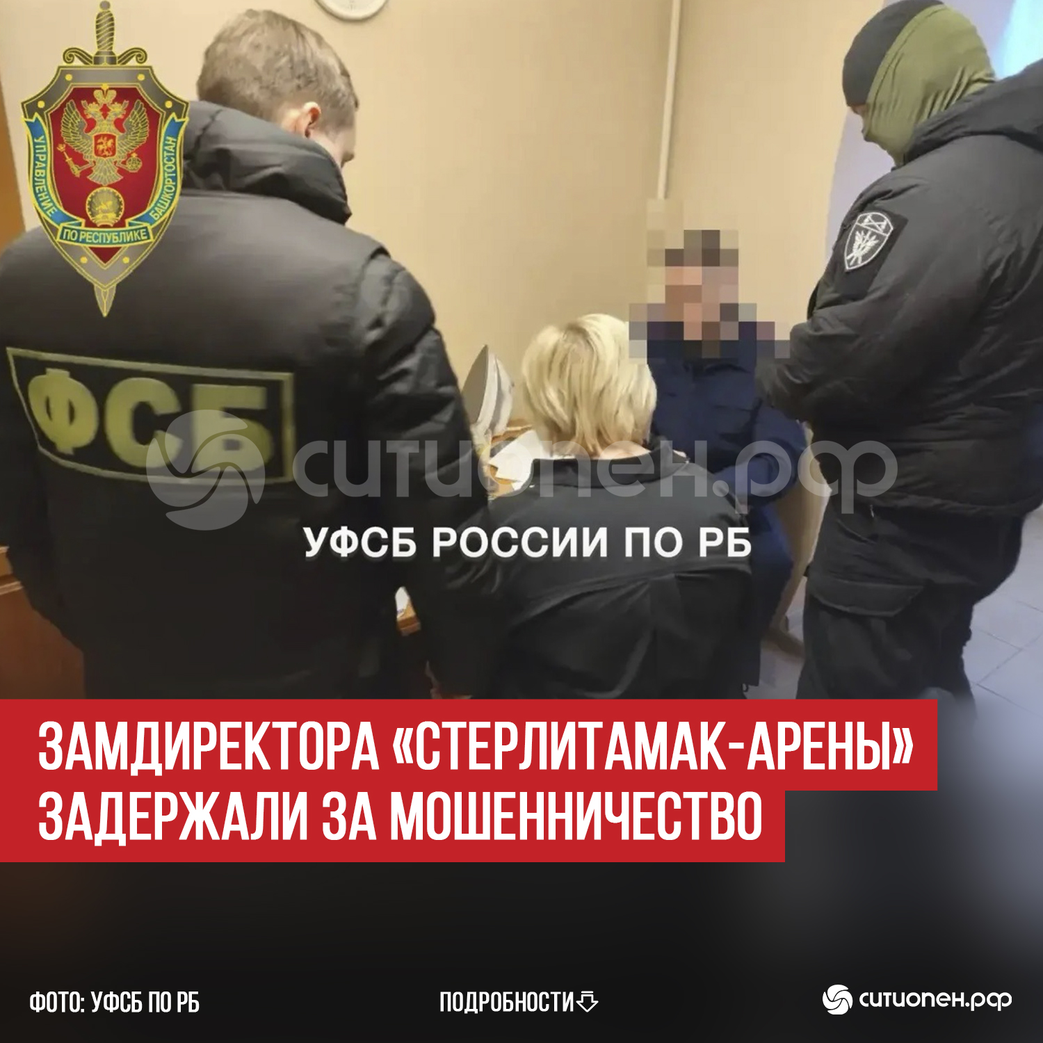 В Стерлитамаке задержали заместителя директора по административно-хозяйственной части Дворца спорта «Стерлитамак-Арена». По данным ИА «Башинформ», ссылающегося на УФСБ по Башкирии, 54-летняя женщина попалась на мошенничестве. Возбуждено уголовное дело.